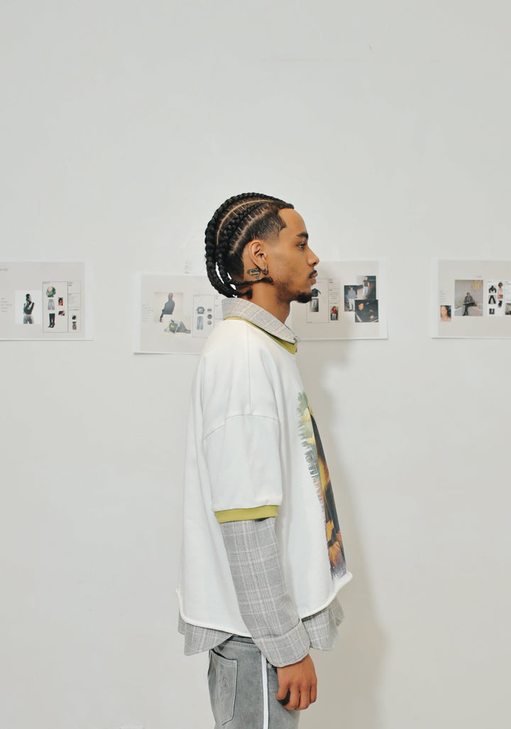 Elevate your wardrobe with the Dream Working Mona Lisa T-Shirt, a bold fusion of art and streetwear. Featuring a deconstructed take on the iconic Mona Lisa print, this oversized tee blends classic and contemporary aesthetics. Designed with layered detailing and contrast trims, it offers a unique, fashion-forward look perfect for standout styling.