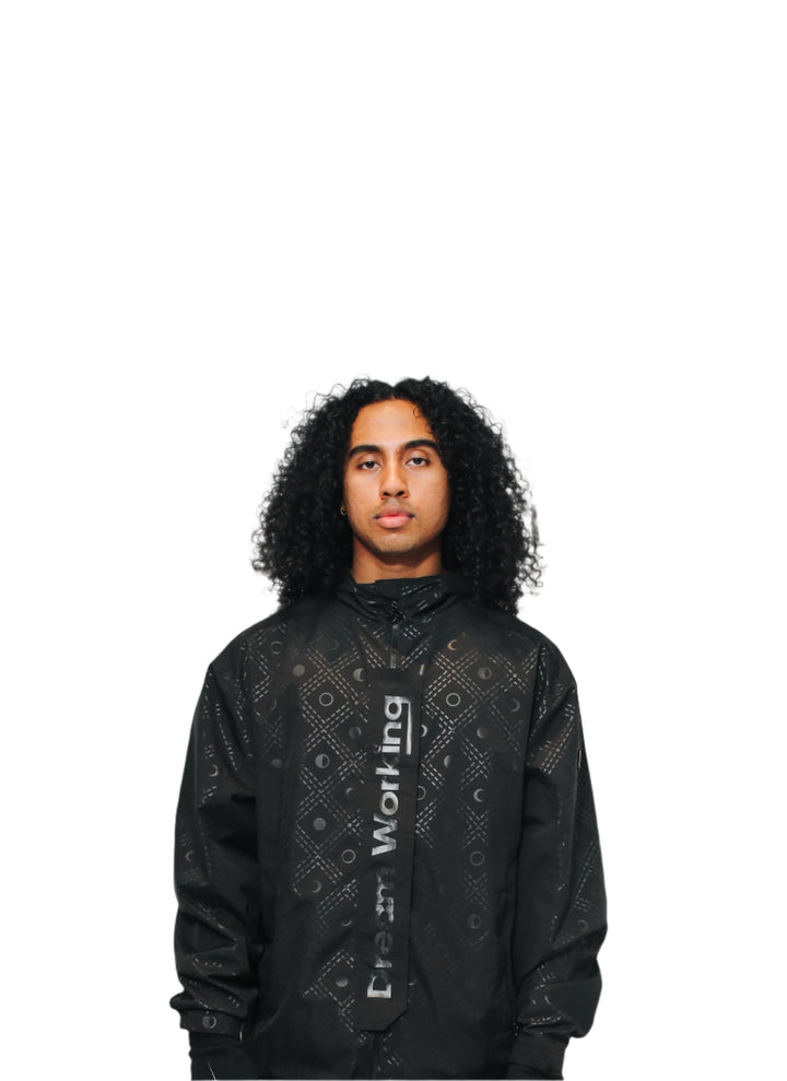 The DW Windy Moon Jacket (Black) is a sleek, weather-resistant jacket featuring a subtle yet stylish moon-phase pattern. Designed for comfort and versatility, it offers a lightweight feel with a modern, reflective design perfect for urban wear.