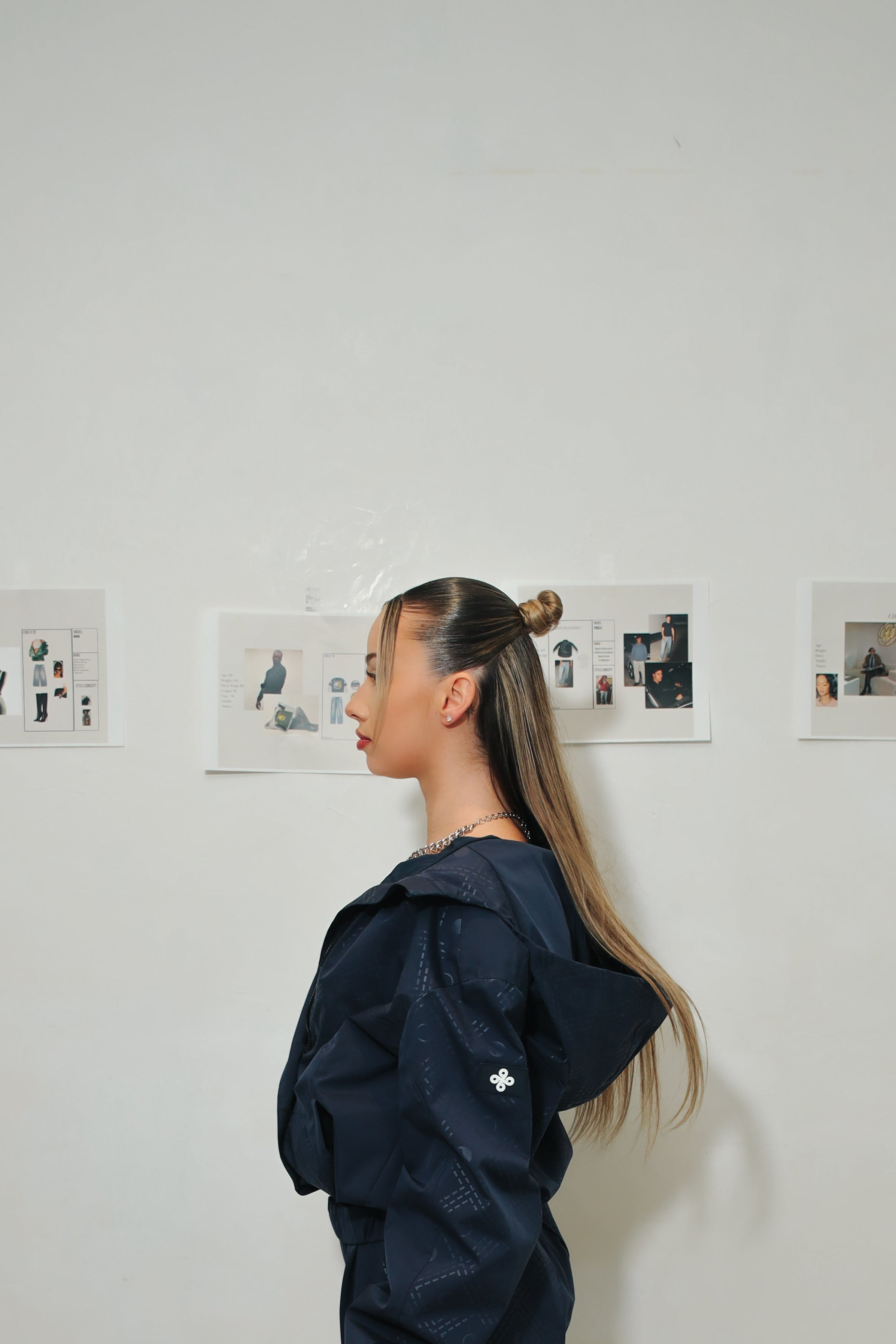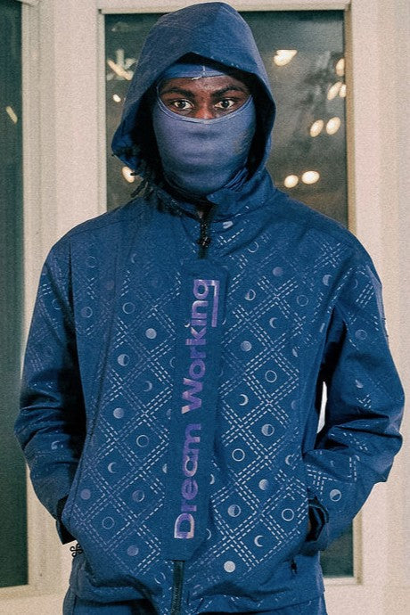 The DW Windy Moon Jacket (Blue) is a sleek, weather-resistant jacket featuring a subtle yet stylish moon-phase pattern. Designed for comfort and versatility, it offers a lightweight feel with a modern, reflective design perfect for urban wear.