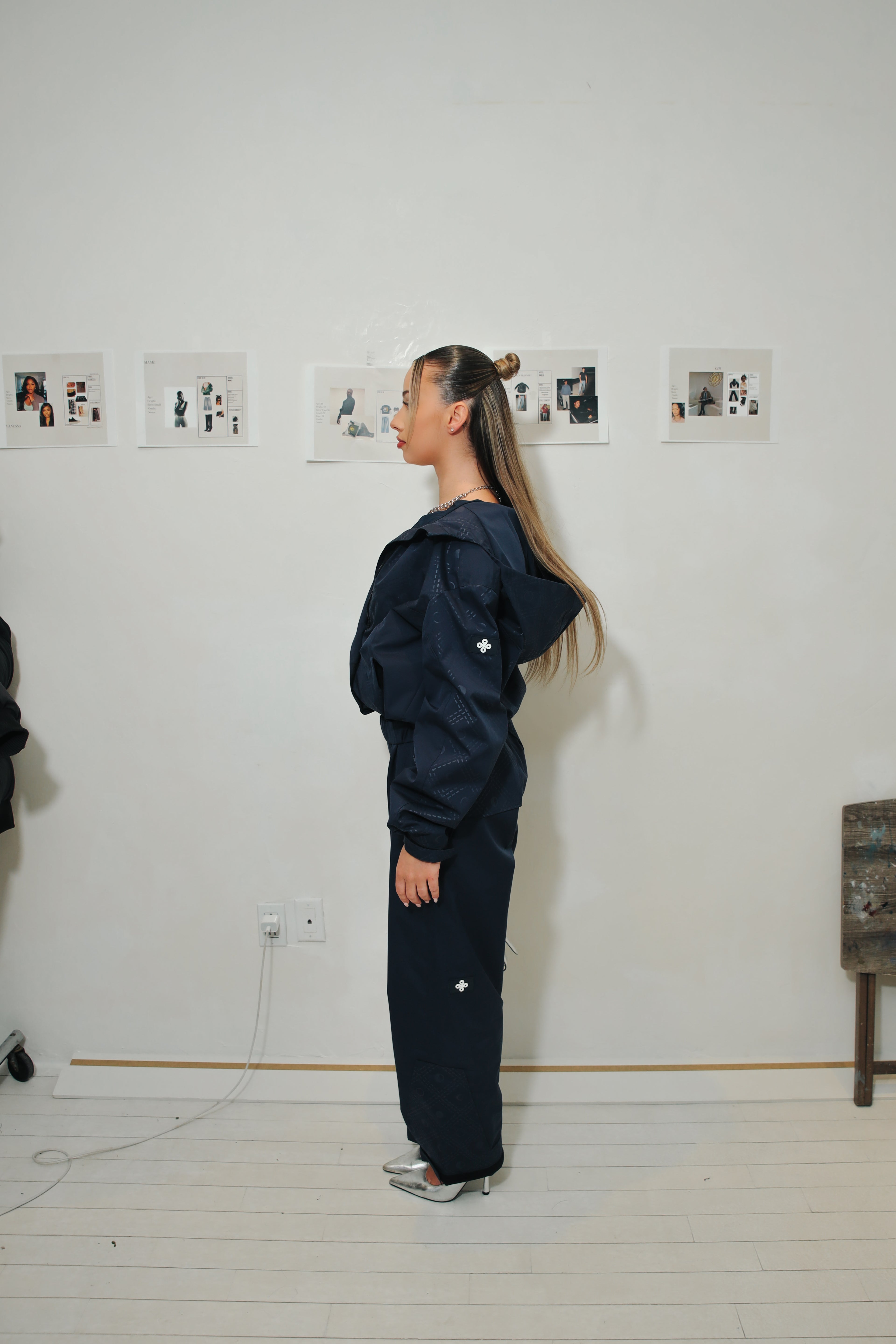 The DW Windy Moon Jacket (Blue) is a sleek, weather-resistant jacket featuring a subtle yet stylish moon-phase pattern. Designed for comfort and versatility, it offers a lightweight feel with a modern, reflective design perfect for urban wear.